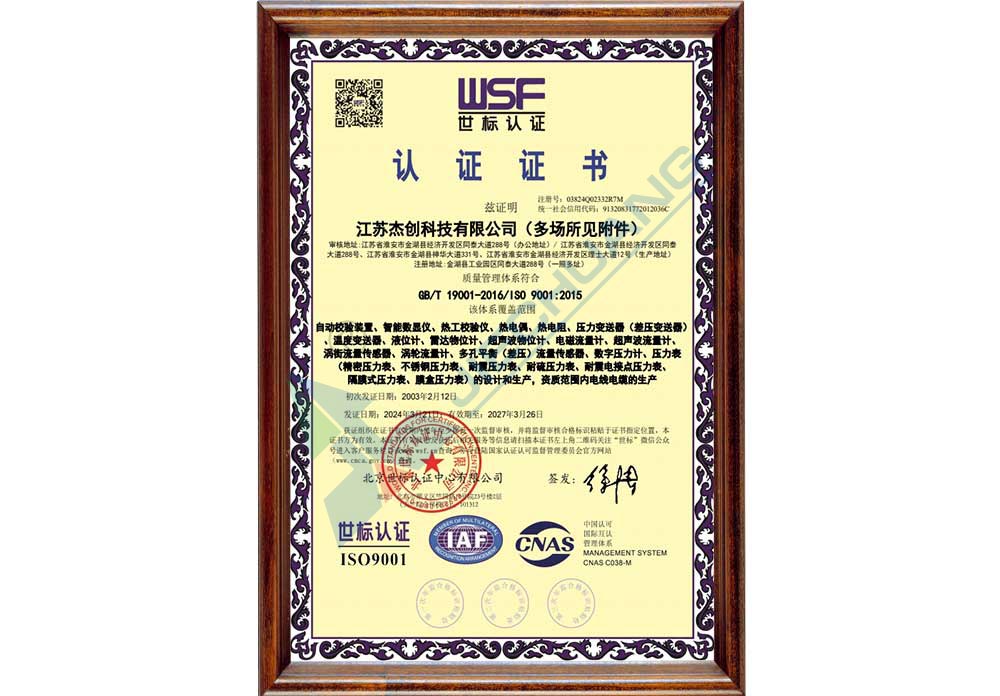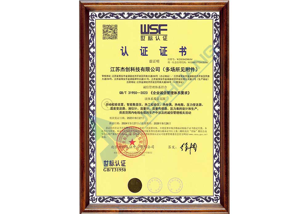 ·热电偶、热电阻等三个产品获得“采用国际标准产品标志证书”