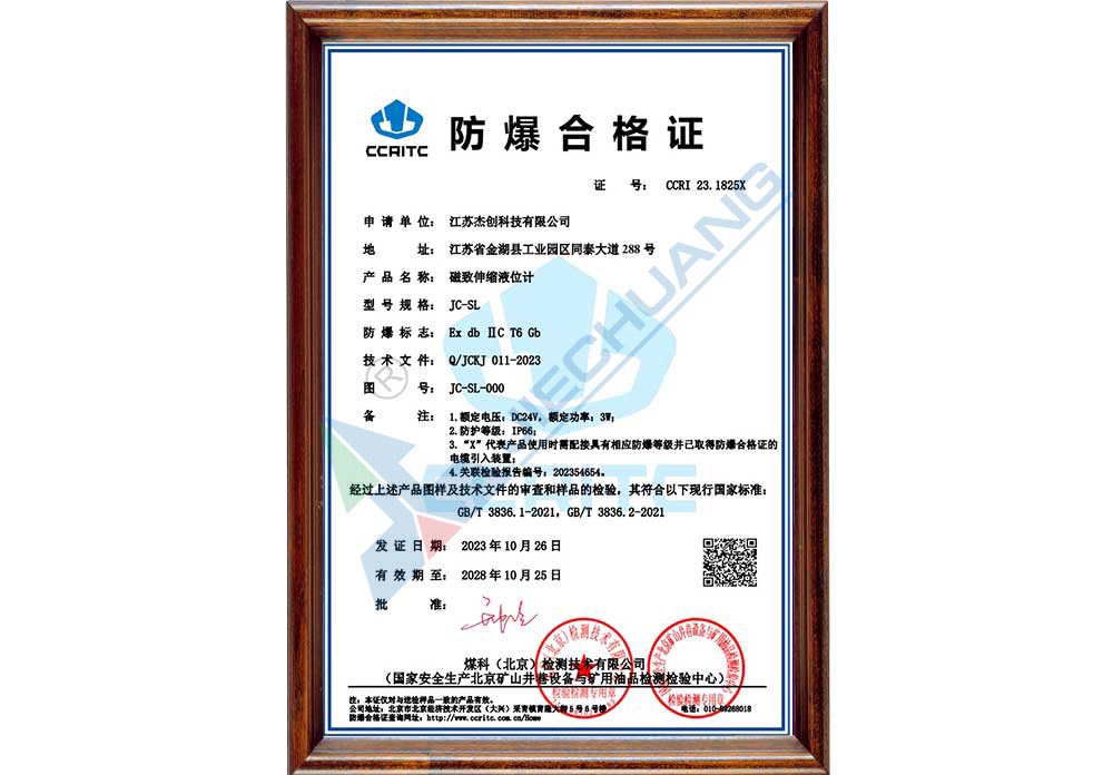 ·取得雷达物位计、超声波液位计、无线智能压力仪防爆证